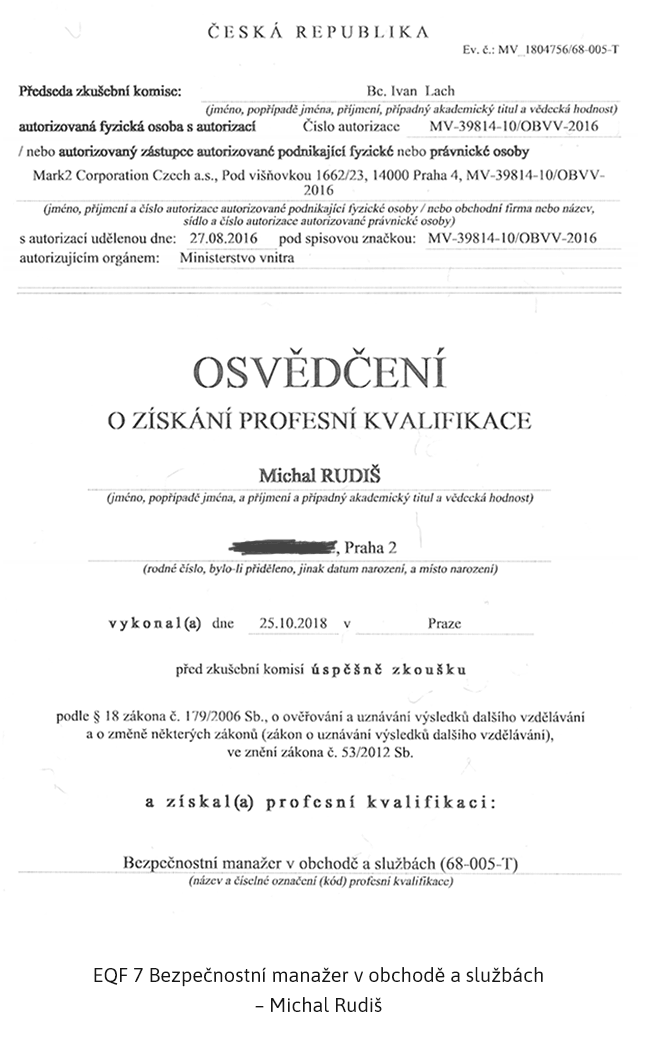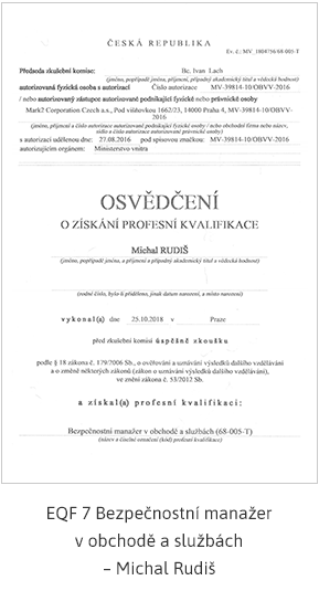EQF úroveň 7: Bezpečnostní manažer v obchodě a službách